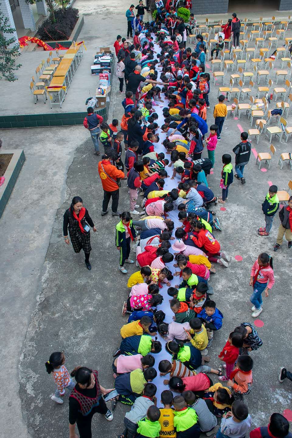 “五人六足”游戏完了,就是“我有一个梦想”长绢绘画活动,孩子们以画或写的形式纷纷在长绢上描绘着自已的梦想或心里想说的话,有“长大了做老师的”“我要当科学家飞向宇宙”“我要上大学”,也有感恩父母、老师的“爸爸妈妈在外打工辛苦了,我爱你们!”“老师辛苦了,以后我不再调皮了,谢谢你”,还有“我长大了也做企业家,我也要像叔叔阿姨一样做公益,去帮助他人!”虽然我们只是一个小小的捐助活动,但爱已萌芽,相信在孩子们以后的人生中会更懂得分享与珍惜、常怀感恩之心!