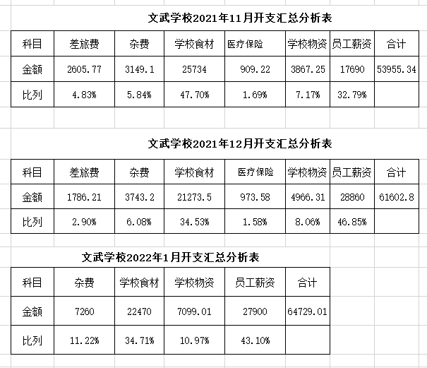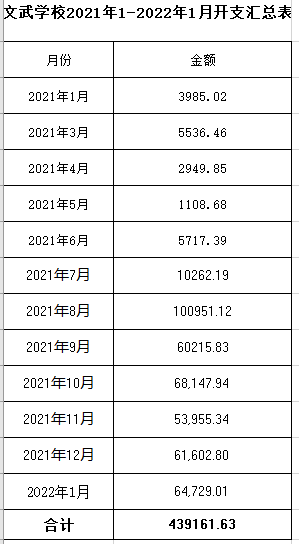 9月1日开学后,共招收了冷水滩区及周边县市因父母重病残障或意外而陷入困境,学习生活难以为继的适学儿童58名。为保障孩子们在校期间所有吃住学习所需共募集各项物资及现金近百万元,其中现金749568.54元,萱娅暖阳学校筹备及2021-2022学年第一学期共支出439161.63元,现公开如下: