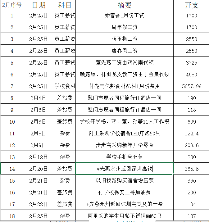 2022年2月份支出明细如下: