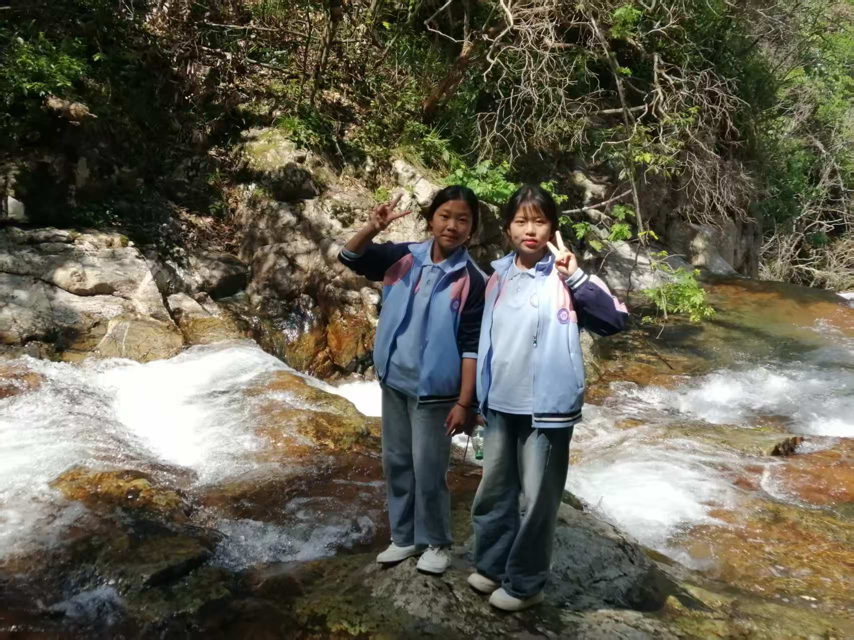 二是自然生态探索。游览杜鹃花海(季相期未达盛景但仍见零星绽放)、万寿寺(体验万寿泉文化)、万和湖(感受山水生态之美)及小黄江源(开展溪畔实践活动),引导学生观察自然、热爱自然;