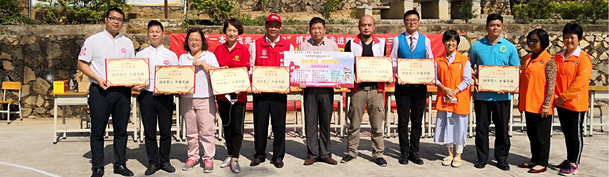 • 4月5日,联合深圳市观兰成人学校向湖南洞口中学及山脚完少捐赠课桌椅、电脑